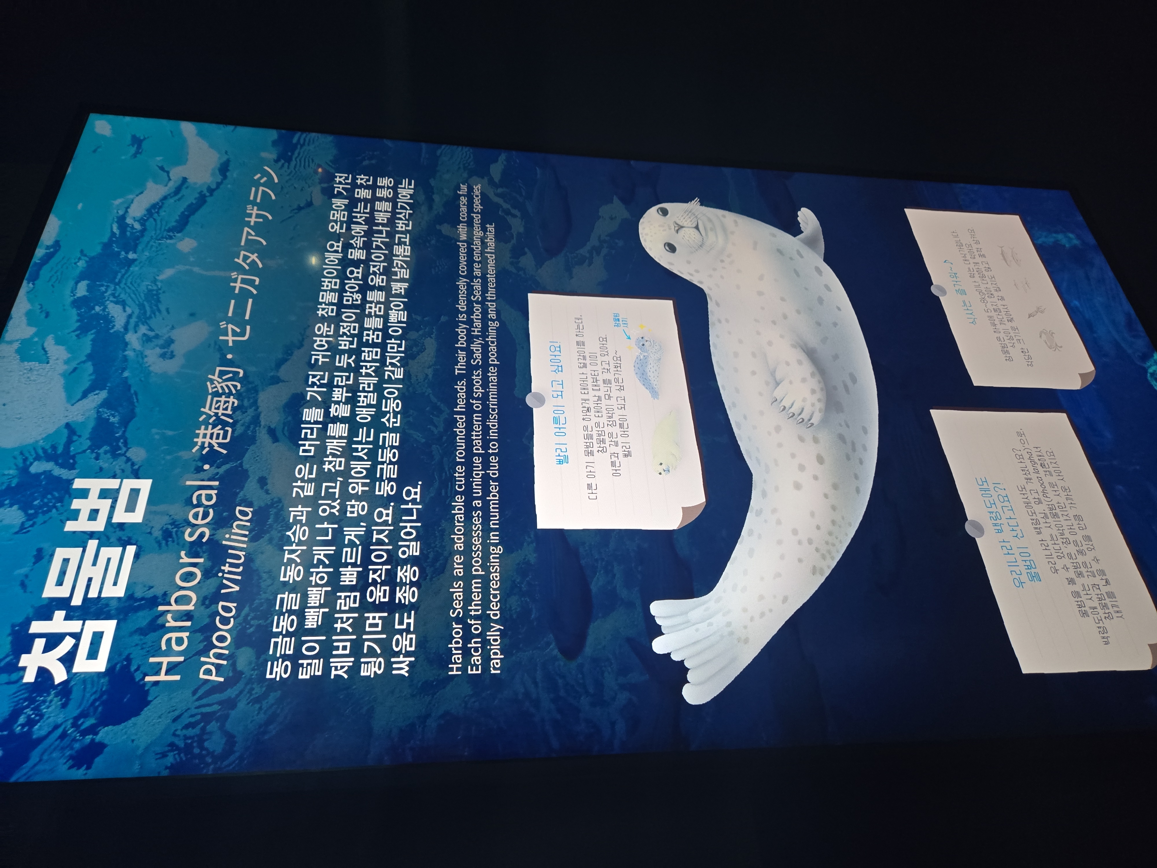 아이들이 놀 수 있는 공간과 함께 해녀들이 만나는 생물을 직접 만져보고 촉감을 느껴볼 수 있는 공간도 있었어요 !