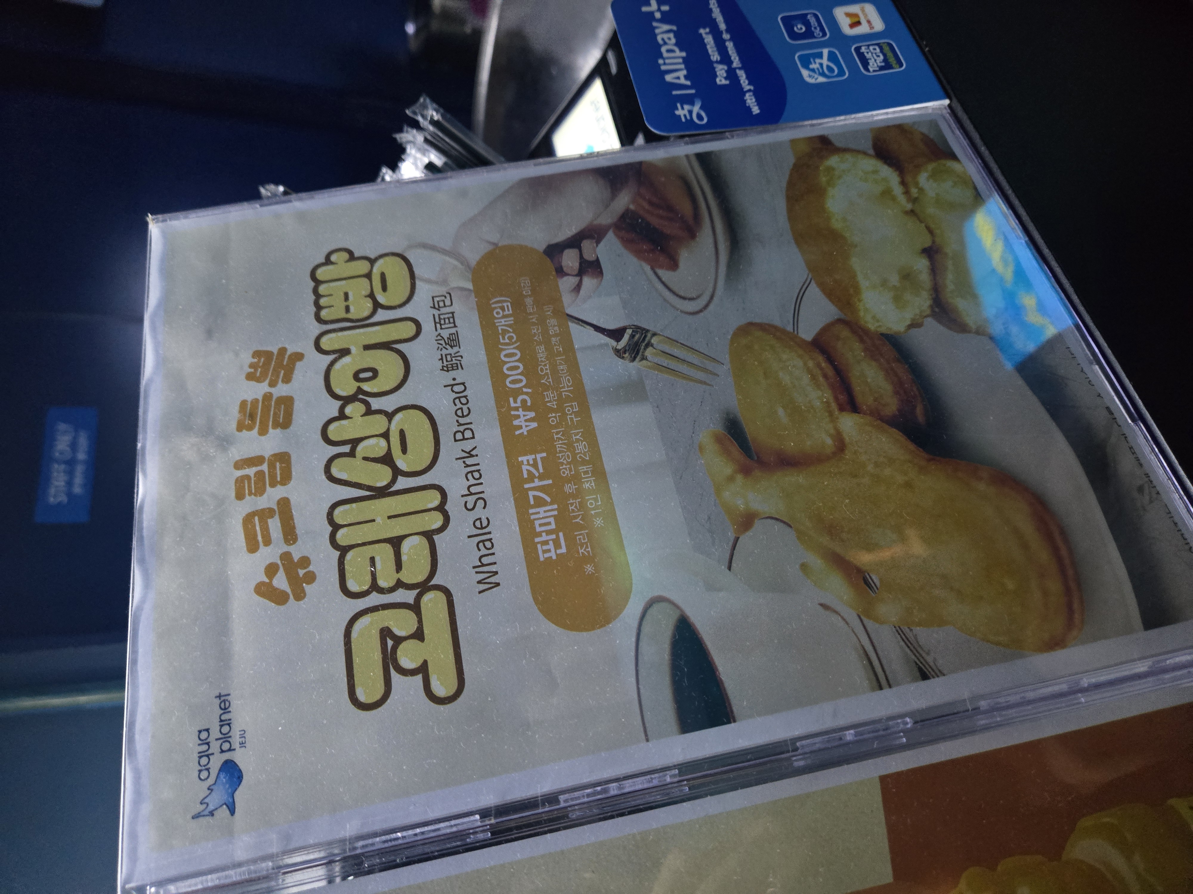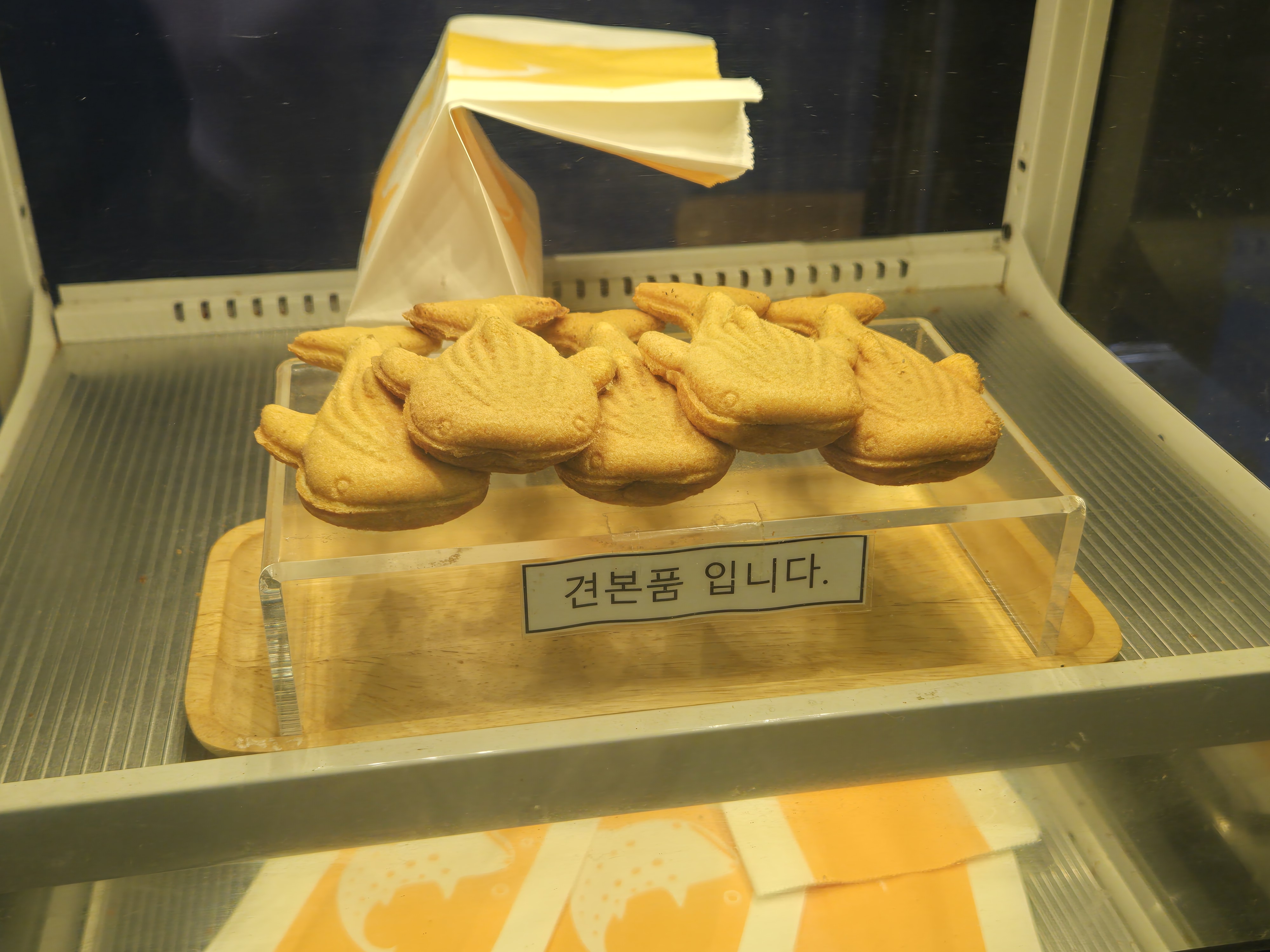 구경하다 보면 어디서 맛있는 냄새가 스멀스멀 올라옵니당 ! 고래상어빵이였어요 ㅎㅎㅎ 안에 슈크림이 들어있고, 반죽은 팬케익 반죽 느낌 !! 가격은 5개입에 5,000원 입니당 !