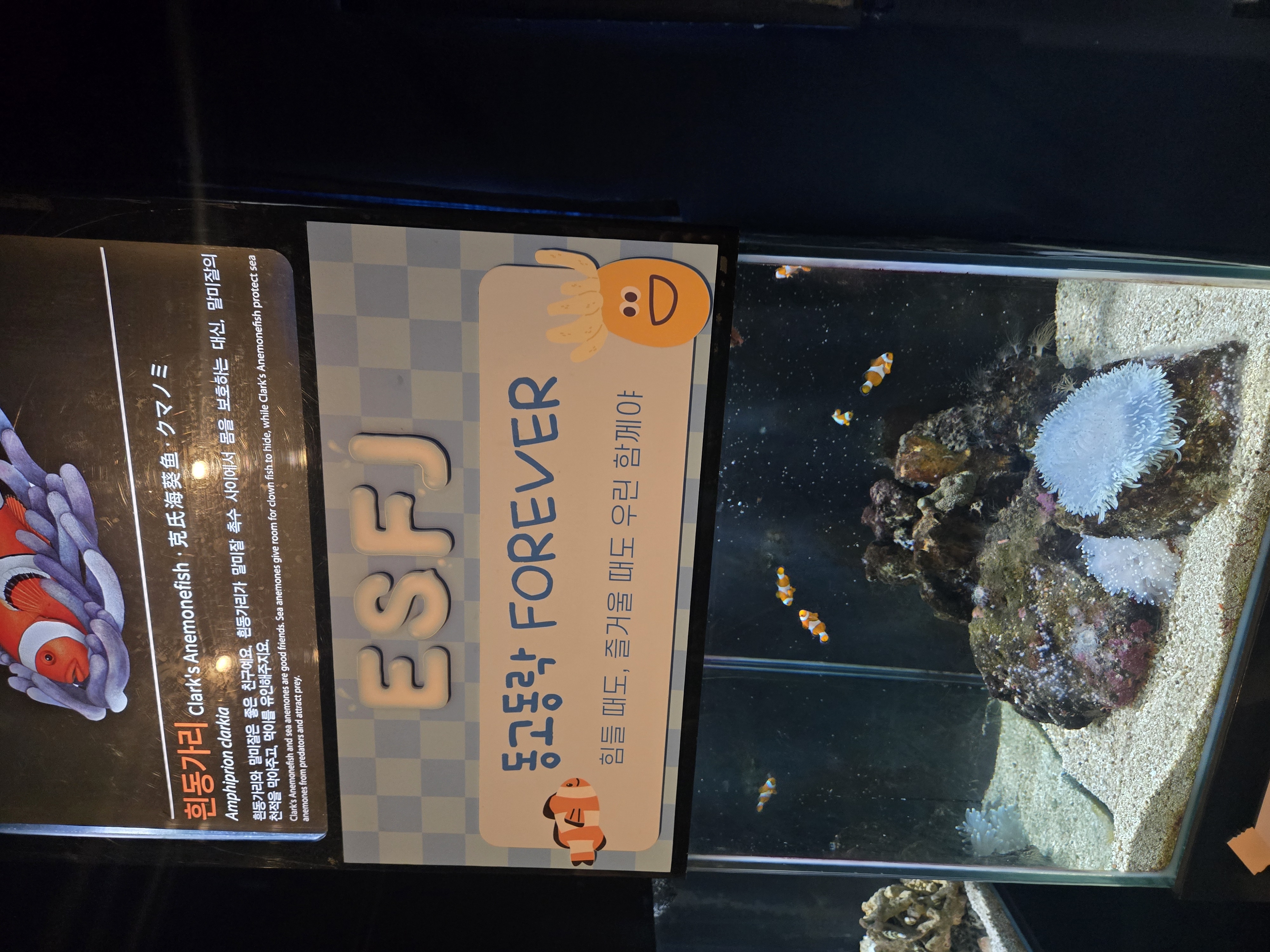 MBTI별로 물고기가 전시되어 있는데, 저는 ESFJ라 니모라고 불리는 흰동가리네요 ! ㅎㅎㅎㅎ
