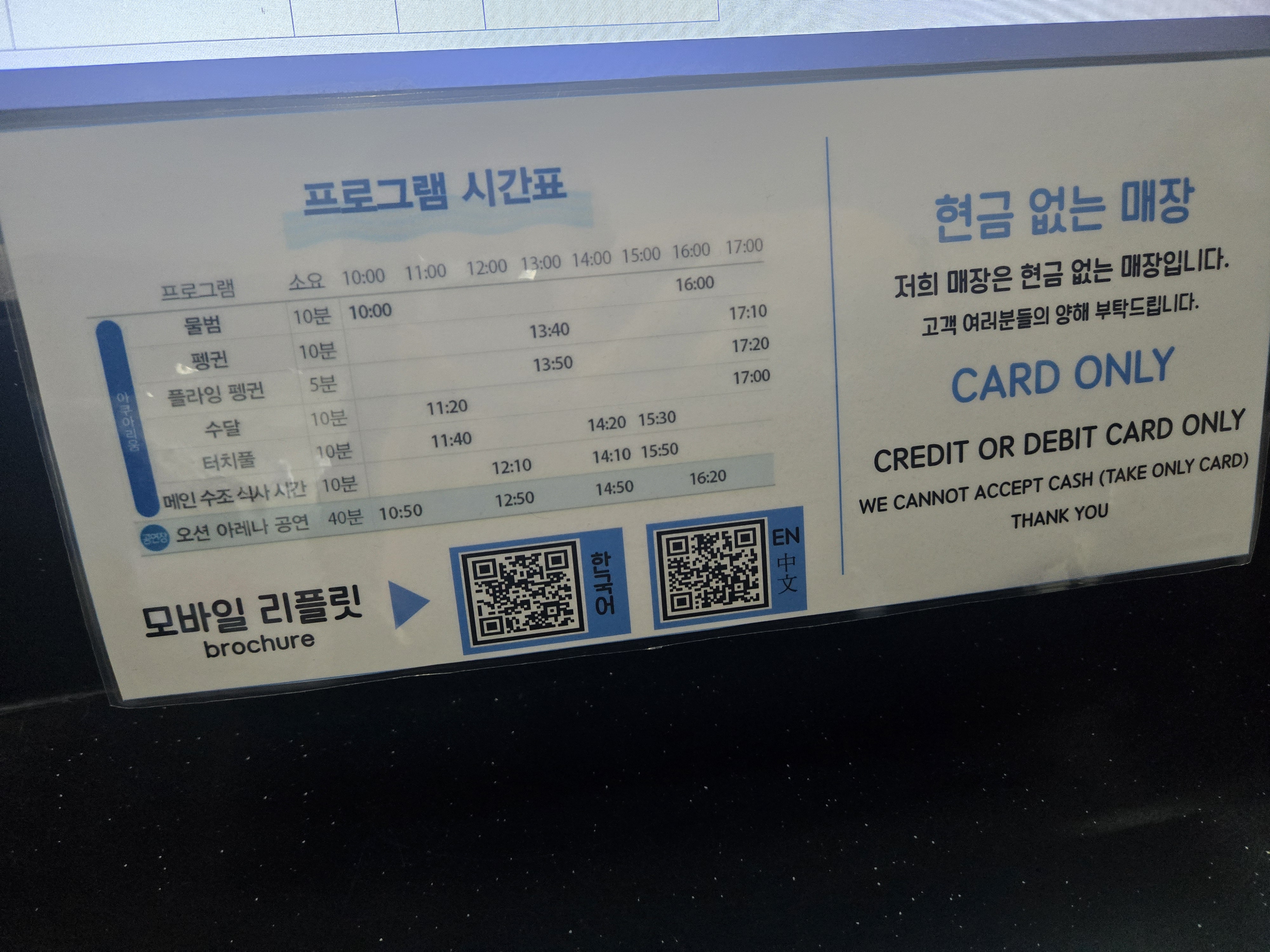 미리 티켓 구매를 하지 않아서, 번호표를 뽑고 매표를 했습니당 ! 아쿠아플라넷은 할인을 많이 해서 제 값을 내고 매표를 하시면 ,, 바보 !! 제휴카드 할인, 우대할인, 국가기관 관공서 할인 이외에 숙박업소나 맛집, 카페, 관광지 등의 할인이 홈페이지에 자세히 나와있어요 !