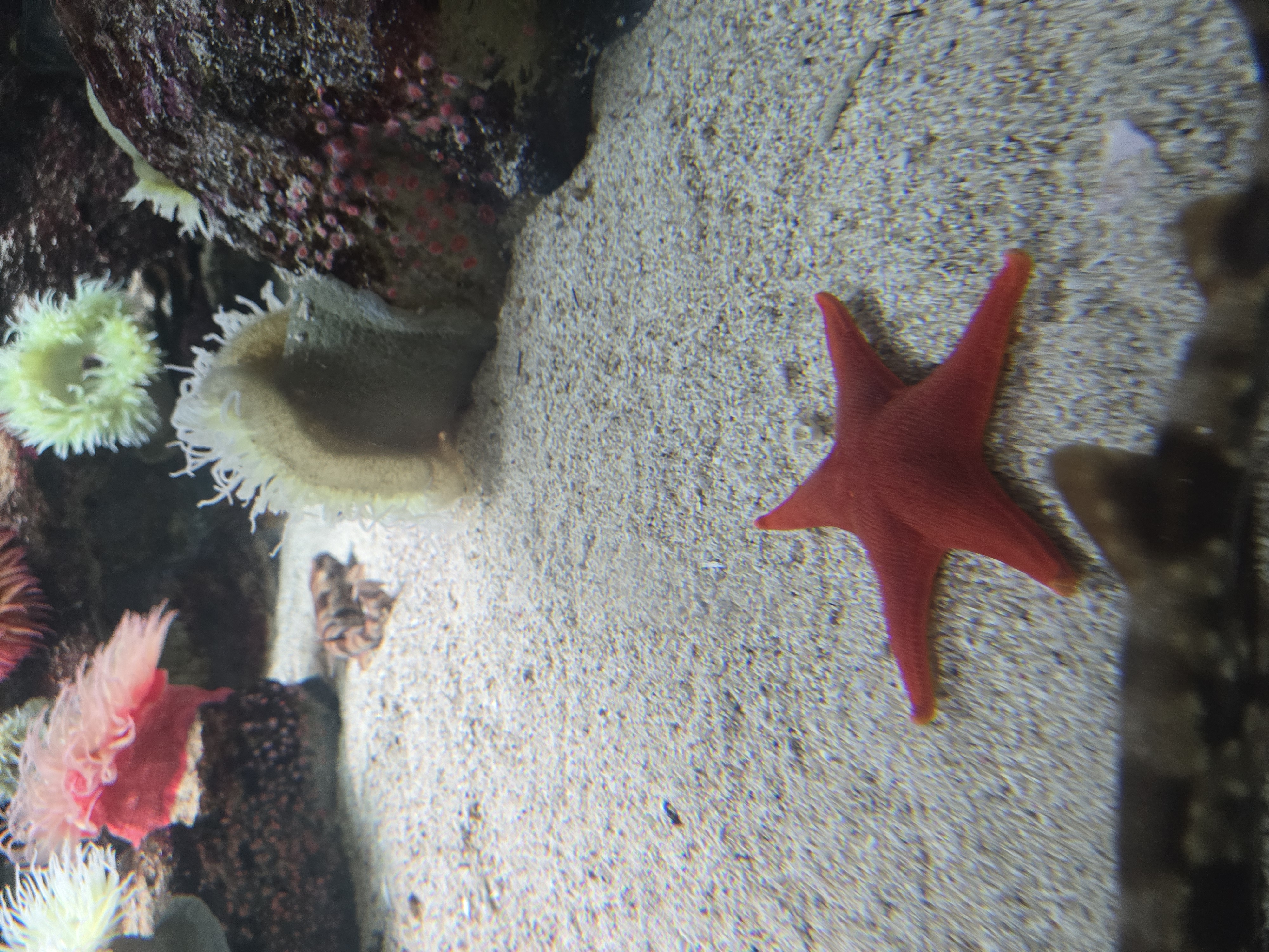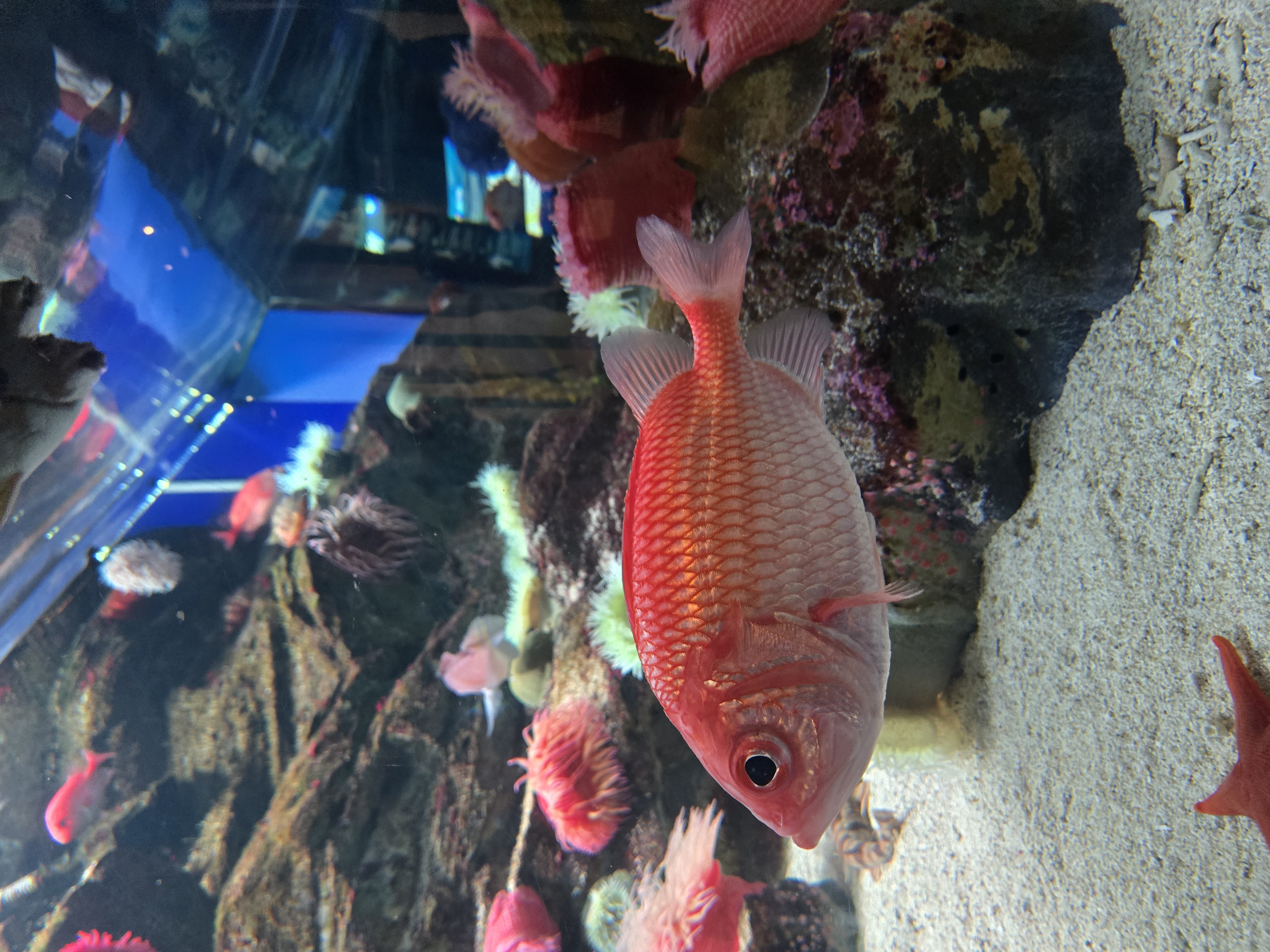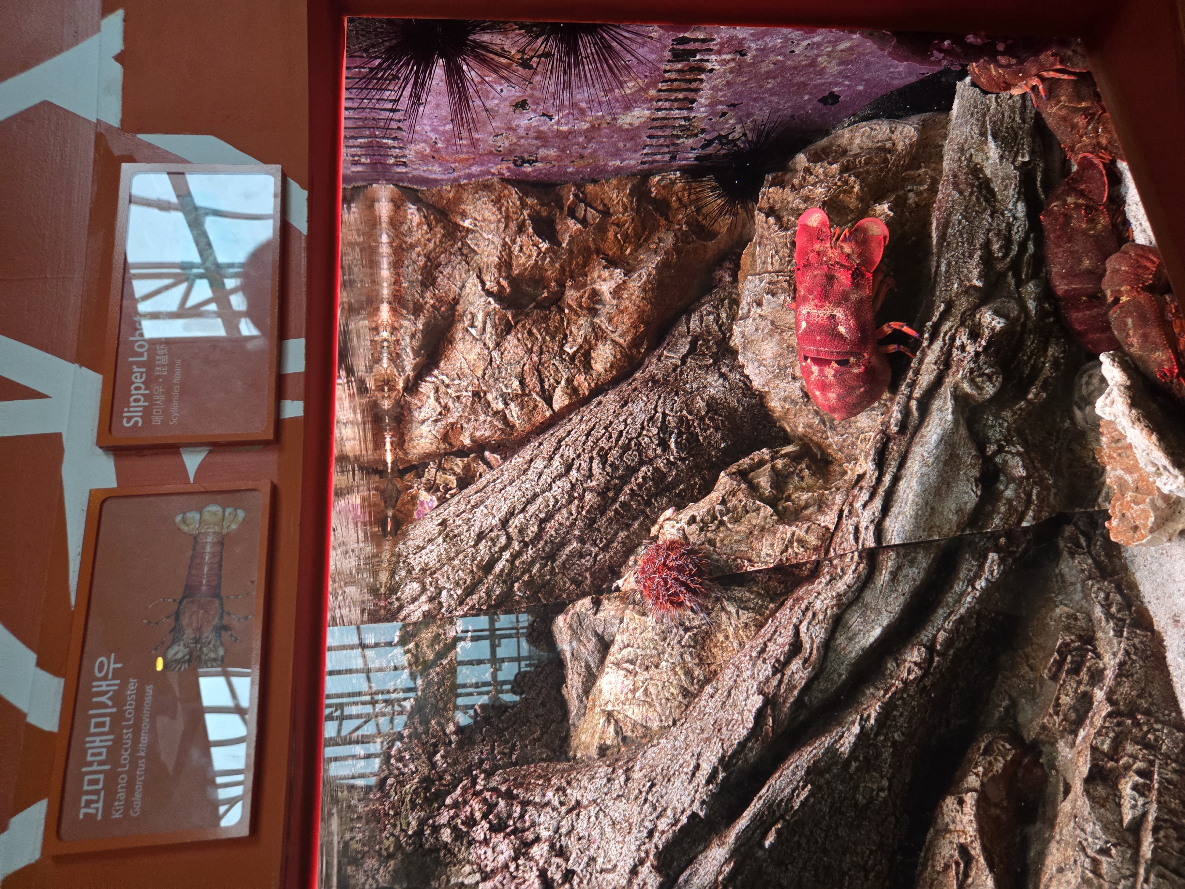본격적으로 구경을 시작했어요 ! 수족관에 붙어있는 빨판상어와 색이 예쁜 옥돔, 만화에서 본 것 같은 불가사리