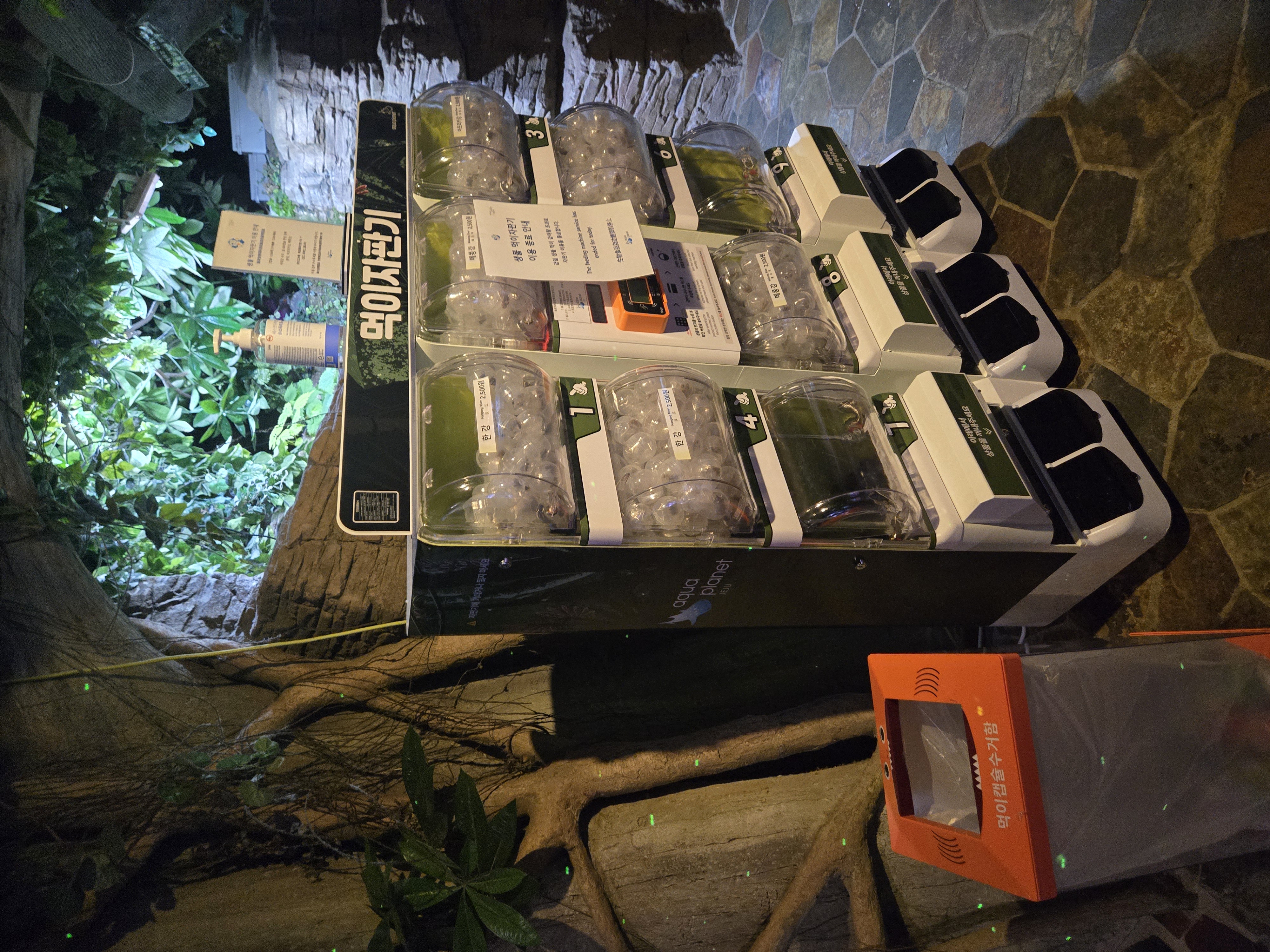 중간에 자판기와 먹이주기 체험을 할 수 있는 먹이 자판기도 있었고, 잠을 자고 있는 다람쥐도 있었어요 ㅎㅎ !