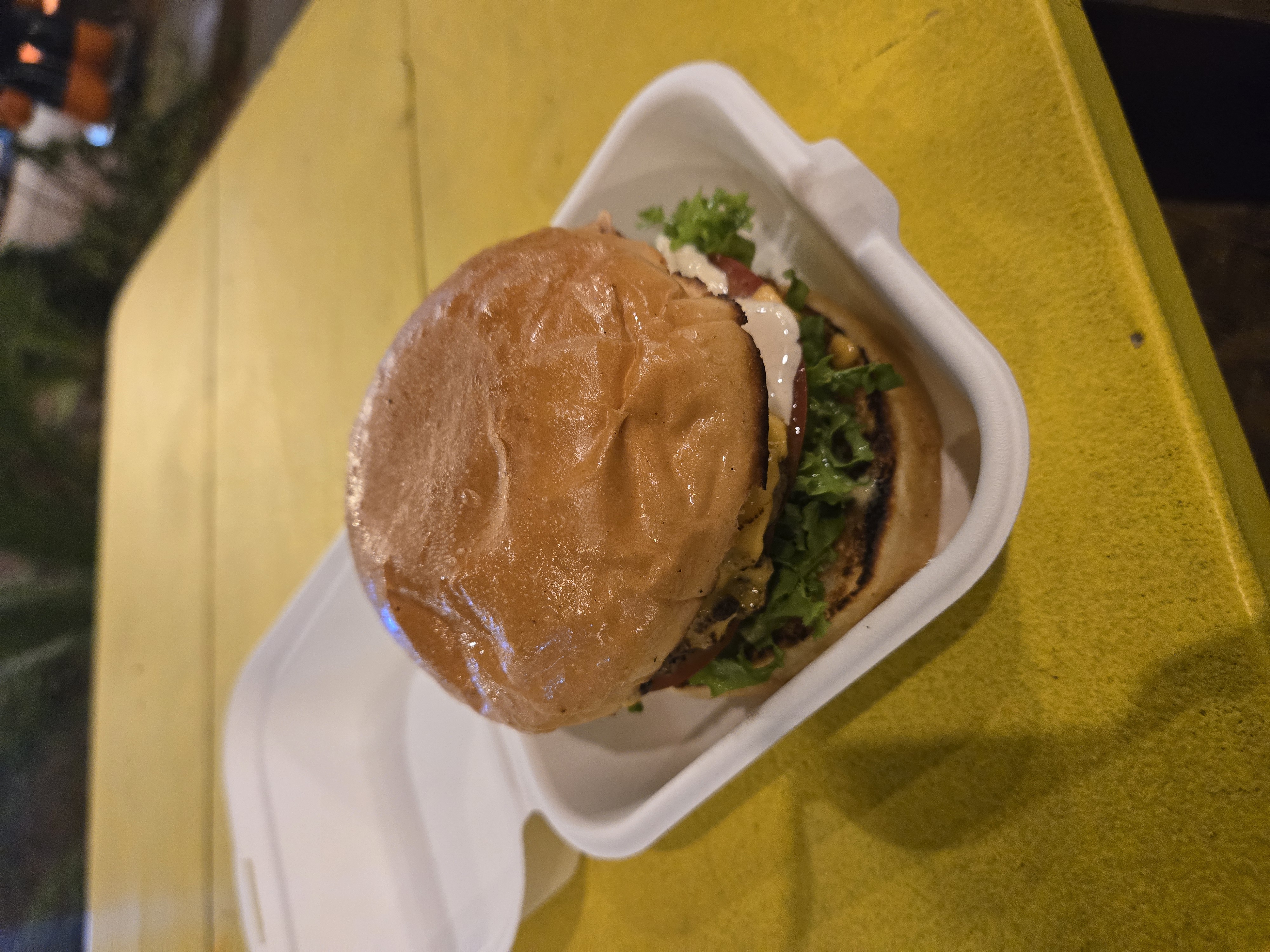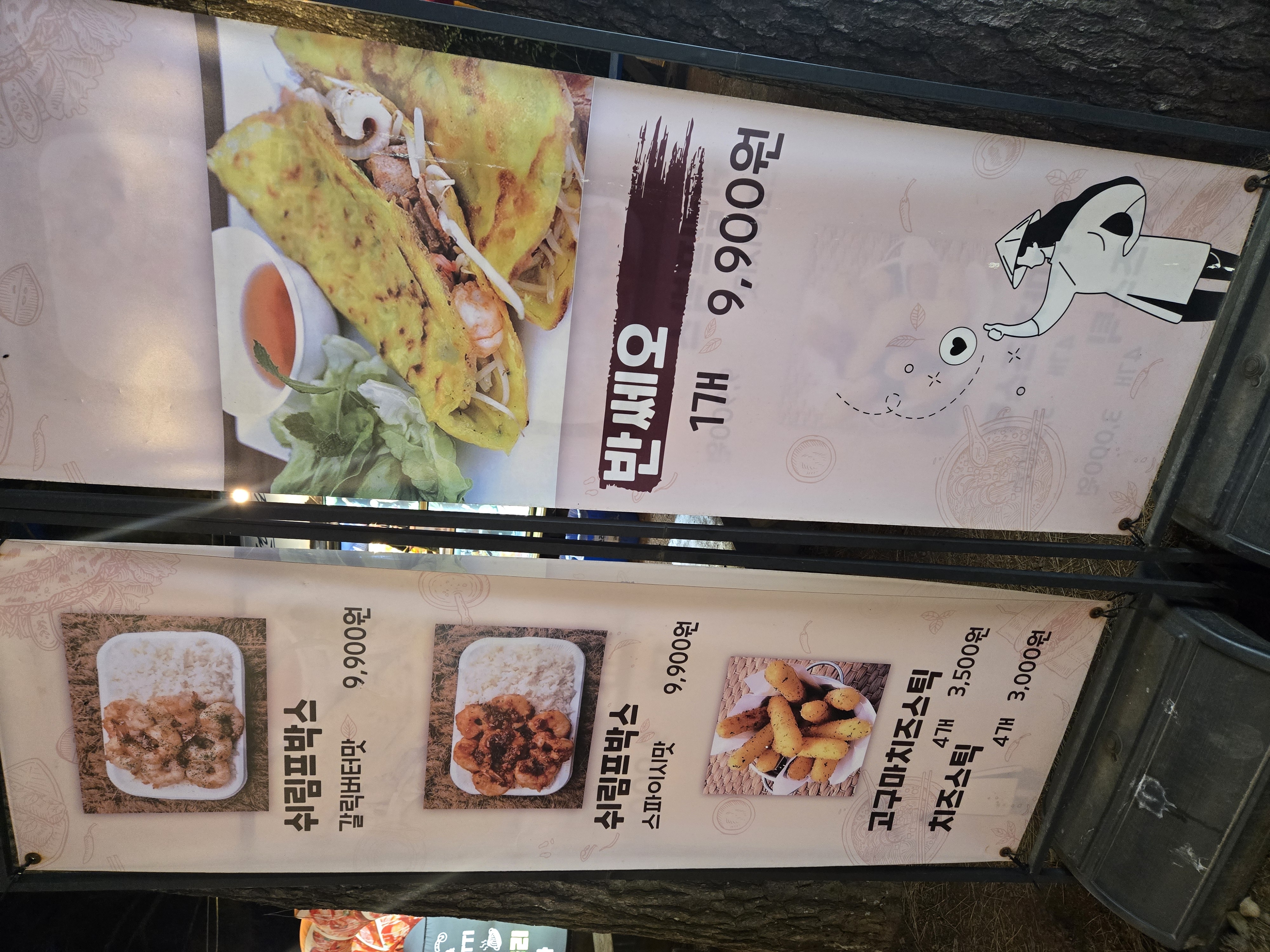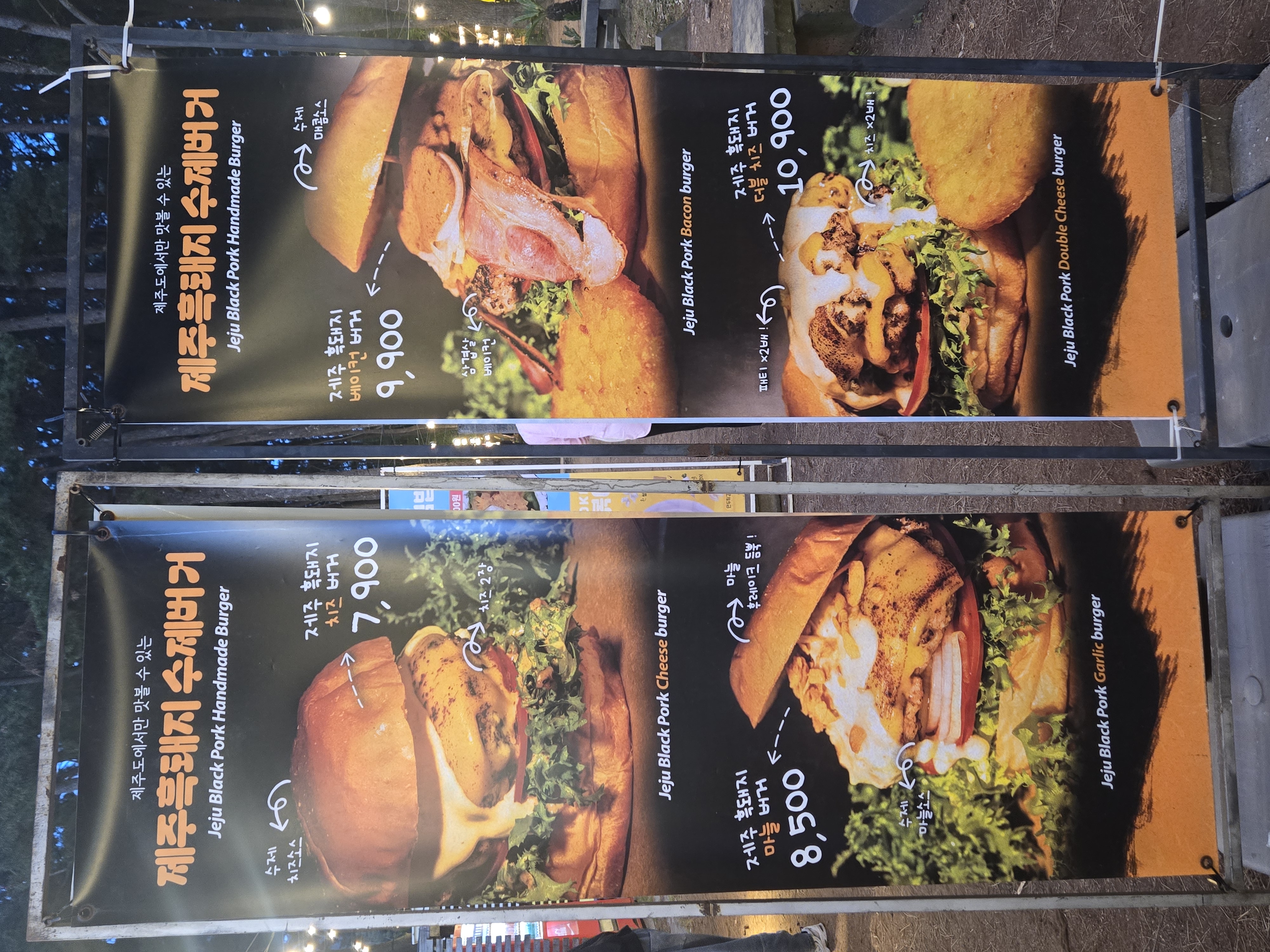 저희는 흑돼지 데리야끼 왕꼬치, 양념갈비구이 꼬치, 제주 흑돼지 치즈버거, 반쎄오 이렇게 먹었어요