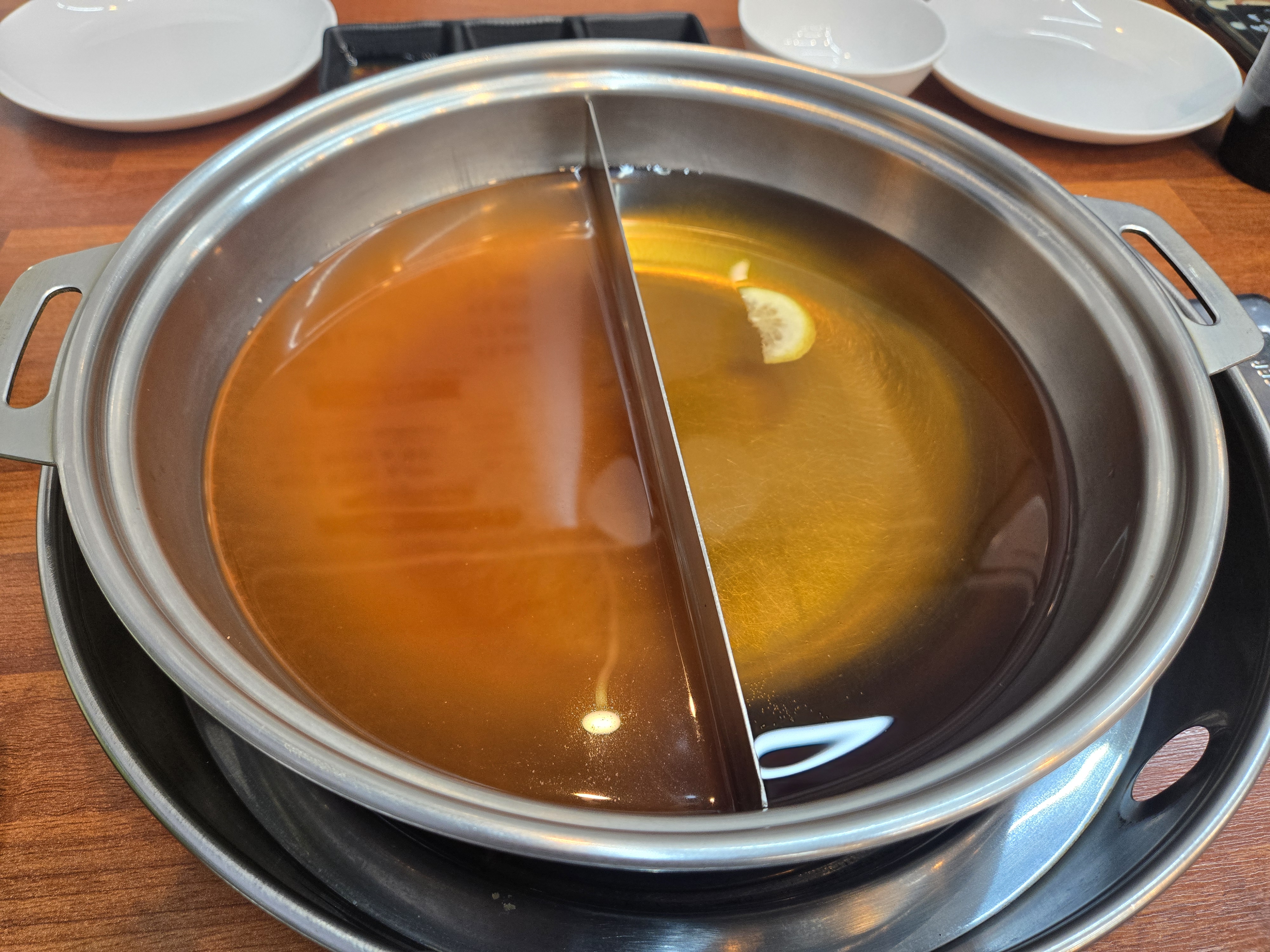 육수는 맑고 깔끔한 육수와 매콤 육수로 반반육수로 나와서 취향대로 먹을 수 있어 좋은 것 같아요 ! 안궁금하시겠지만, 참고로 저는 맑고 깔끔한 육수를 선호합니당