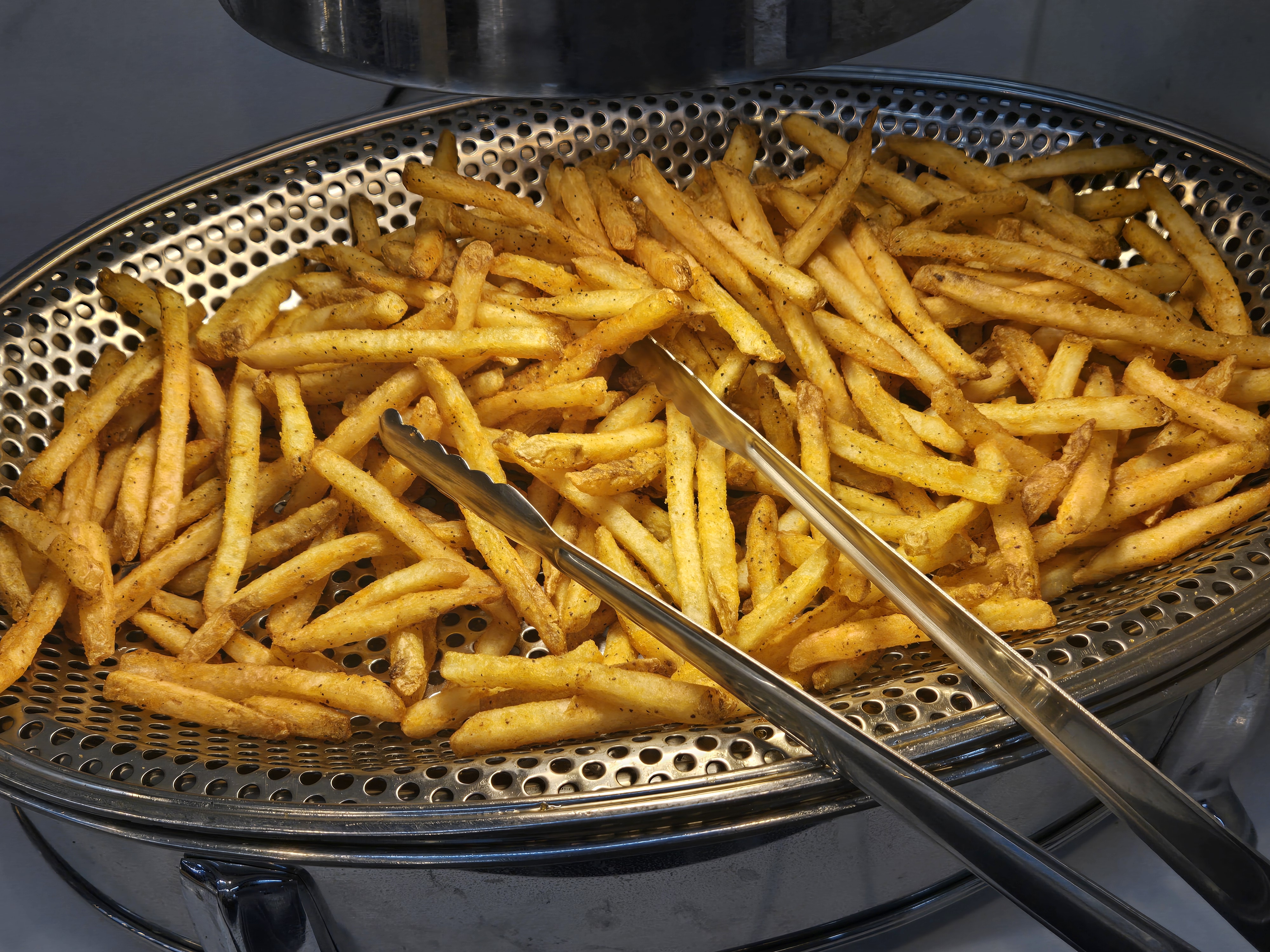샐러드 바에는 감자튀김, 떡볶이, 크림스프