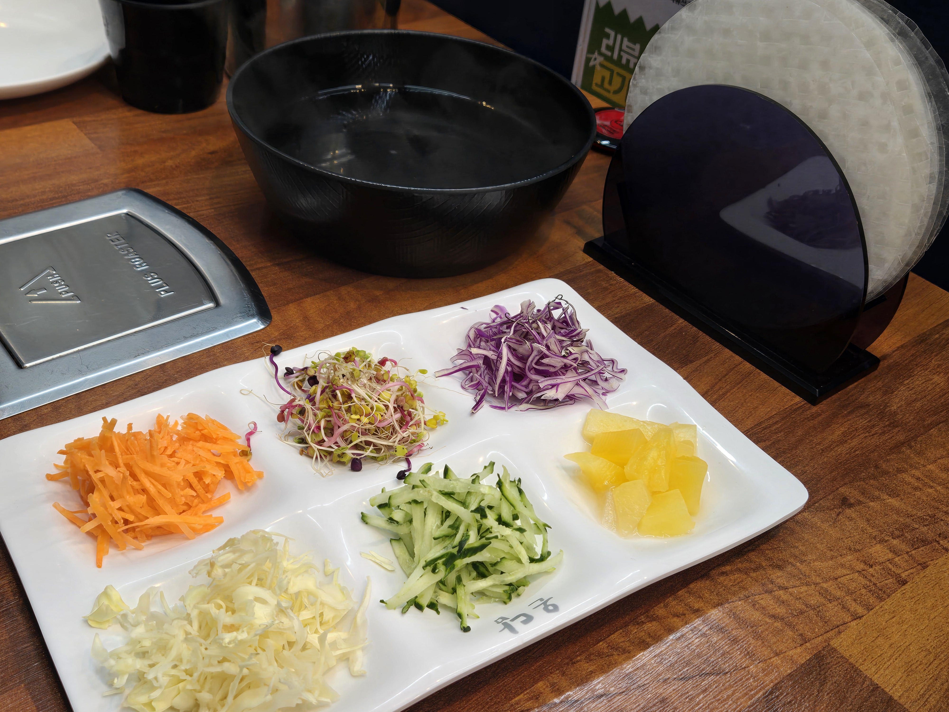 메뉴는 샤브샤브 + 샐러드바 구성인데 샐러드바는 무한리필이라 편하게 이용하시면 될 것 같아요 ! 저는 흑돼지 월남쌈 & 샤브로 주문했어요